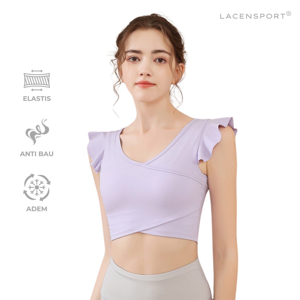 LACENSPORT – Once a Butterfly Sport Crop Top Kaos Baju Olahraga Gym Yoga Wanita